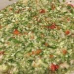 Put all the chopped vegetables in a bowl. Add the salt, and mix well. Let stand a minimum of 2 hours, or overnight. It seems like a lot of salt, but we’ll drain and rinse it so the final relish won’t taste overly salty.