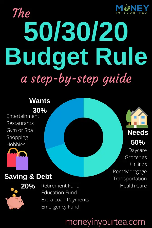 The 50/30/20 budget rule is a simple and intuitive plan to help you reach your financial goals. You allocate 50% of your after-tax income to needs, 30% to wants, and 20% to savings and debt repayment. Budgeting doesn’t have to be intimidating. And it doesn’t have to mean giving up your latte. But in order to be financially responsible and we do need to have a certain level of tracking. And in order to retire someday, in relative comfort, we need to be saving some of our income for the future.